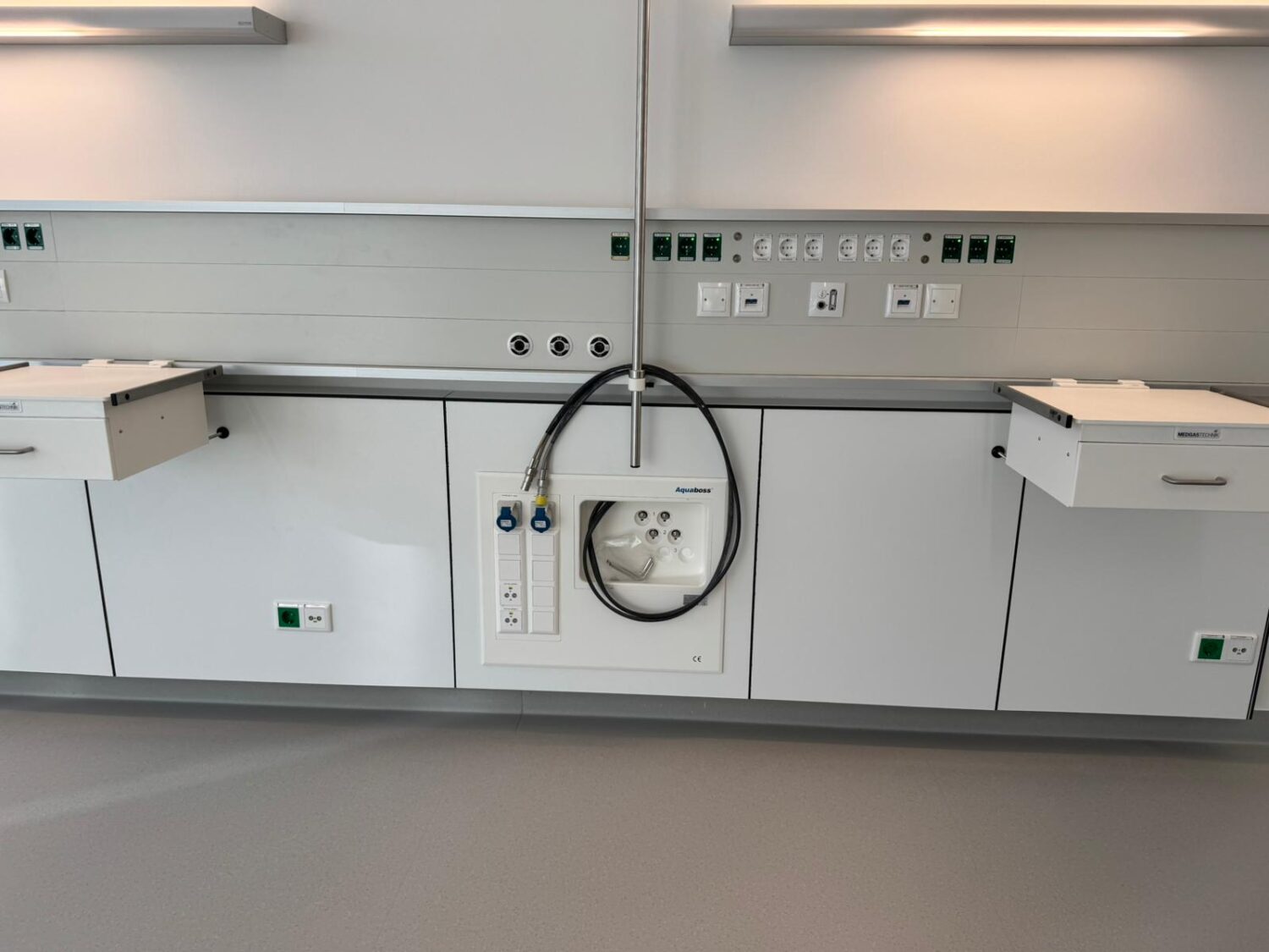 In einer Klinikdialyse gibt es besondere Herausforderungen. Um diesen gerecht zu werden, haben wir die verschiedenen Schnittstellen wie beispielsweise die Medizintechnik sowie die medizinischen Gase in einer individuell konzipierten Medienschiene kombiniert.