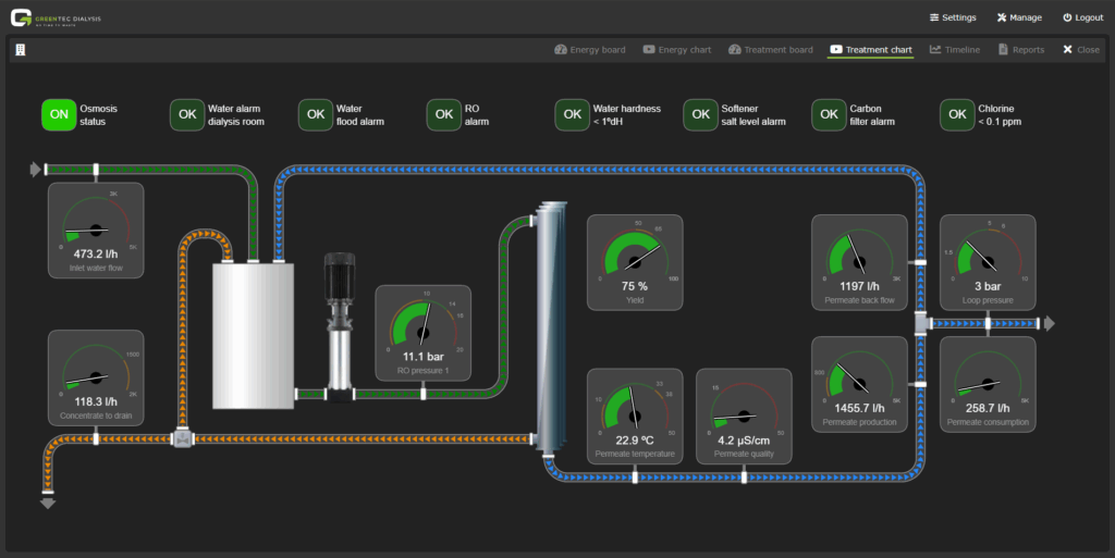 - Automatic dispatch of alerts to shorten on-site response times and minimise the risk of downtime during dialysis operations.