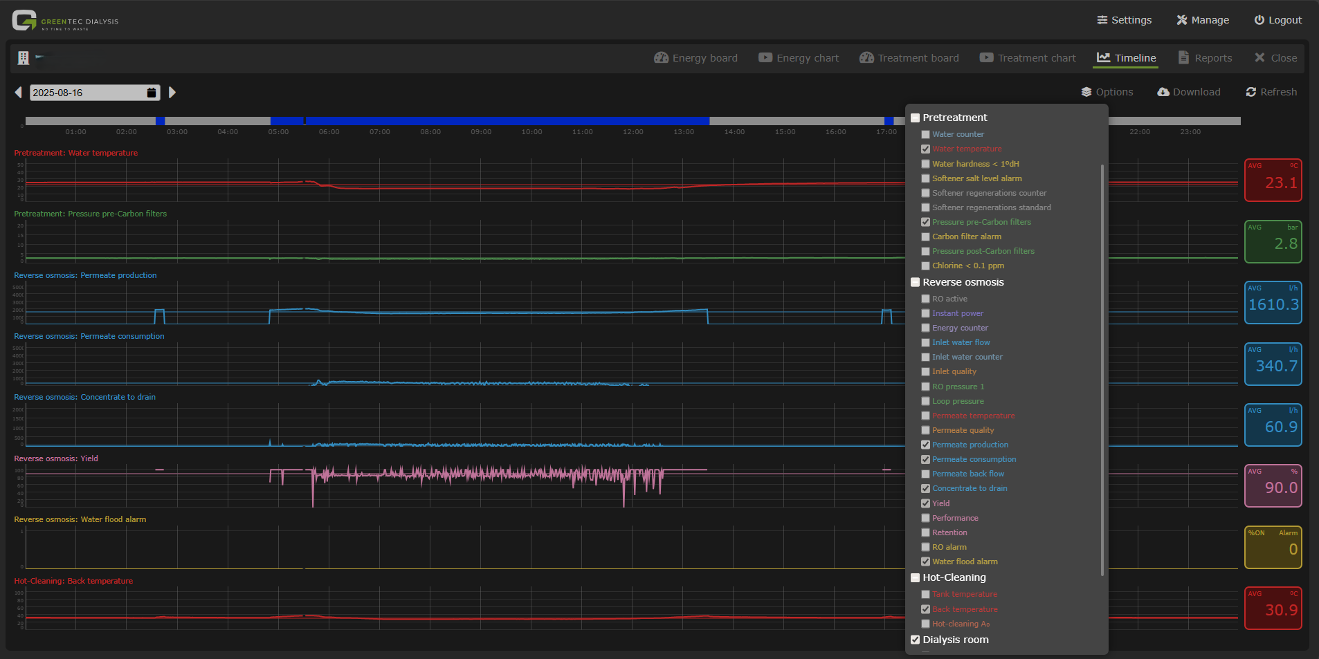 - Technical specialists: Central system monitoring of multiple facilities from a single platform (including operating parameters of RO systems and prefiltration, as well as permeate quality monitoring).